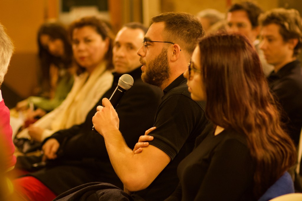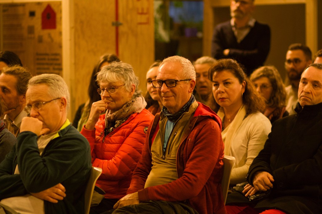 Le public pouvait y répondre par un “oui” en se mettant debout ou par un “non” en restant assis. Nous avons eu l’occasion d’écouter les justifications de certains participants pour connaître leur avis. Ces avis sont mitigés, est – ce qu’il y a plus de vie sociale à la campagne qu’en ville? Comment la recréer? Voici quelques extraits de ces échanges: