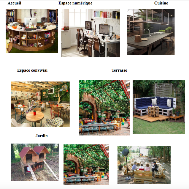 Dans le deuxième temps d’ateliers, plusieurs ambiances d’aménagement ont été proposées dans les différentes pièces du local, voici. celles qui reviennent le plus souvent :