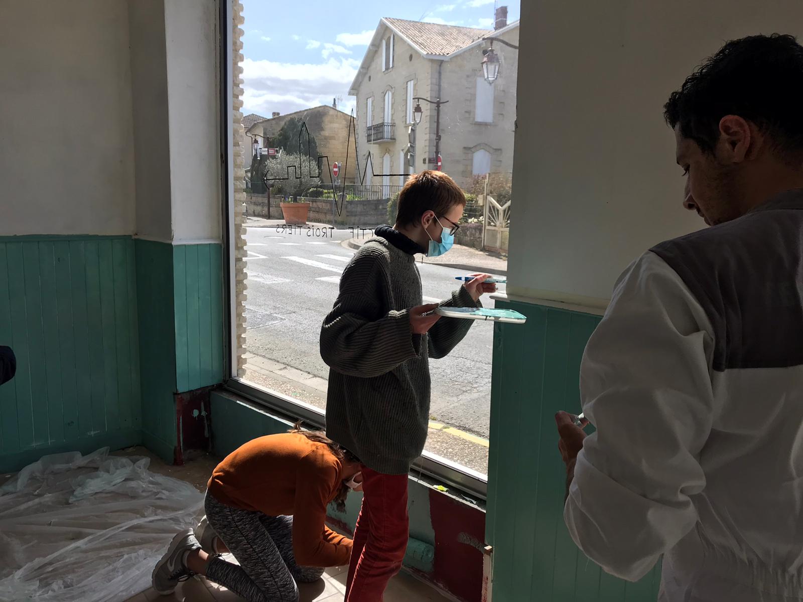 Mais pour se sentir tout-à-fait chez nous et commencer à créer des projets avec les associations et les habitants du Grand Saint Emilionnais, il nous fallait avant tout investir réellement notre pied-à-terre lussacais, c’est-à-dire refaire une beauté au super local de vente de 18m2 de l’ancienne boulangerie de Lussac.
