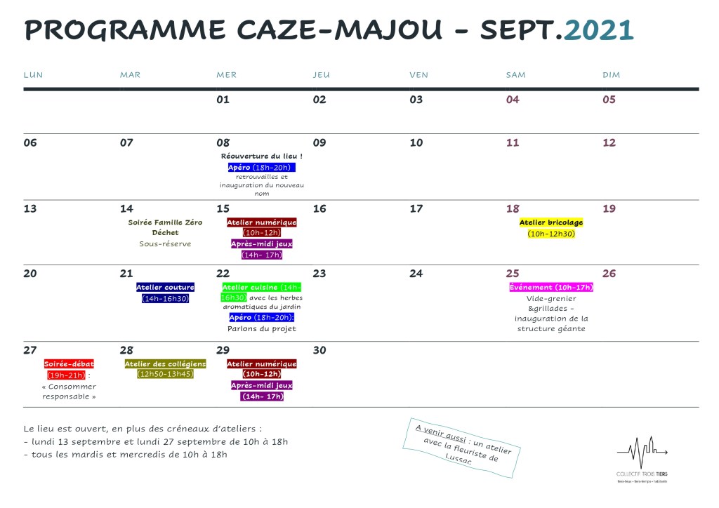 Le Collectif Trois Tiers présente le programme de la rentrée de son lieu de vie dans l’ancienne boulangerie de Lussac ![]()