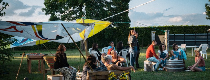 La semaine suivante, pas de repos pour les habitants du Grand Saint-Emilionnais : se sont tenues les olympiades du lieu, que dis-je, le fameux Koh-Lussac ! 6 équipes se sont affrontées au cours d’épreuves créatives, sportives et jeux de piste façon aventuriers de Koh Lanta, et ce dans la bonne humeur et le fair-play ! Forts de récompenses, les participants et participantes ont ensuite pu profiter de la suite de la soirée autour d’un barbecue et de la projection de notre film “Le Pari des Campagnes” et d’un court-métrage sur le Mascaret.