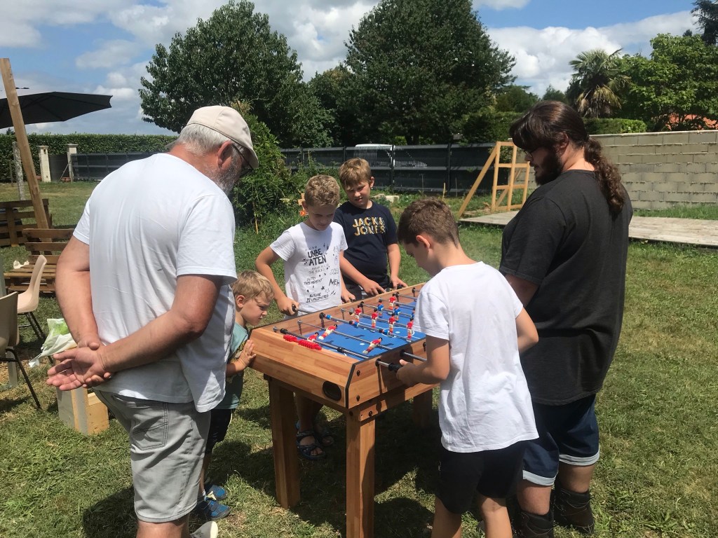 Suite aux chantiers participatifs des mois de mai et juin, nous avons pu construire ensemble, de concert avec les bénévoles et surtout les habitants du Grand Saint-Emilionnais de quoi faire du jardin un lieu agréable et convivial : mobilier de jardin, scénette ou encore bar en palettes ont fait irruption, aux côtés du joli potager partagé où les jeunes ont pu planter légumes et aromates.