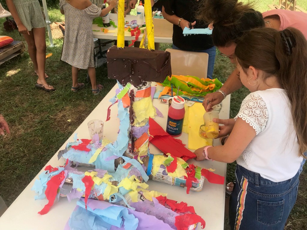 Ainsi, ont pris place des ateliers d’initiation à la couture, des ateliers numériques, mais aussi une après-midi jeux de société et jeux de cartes dans notre jardin. Mais nous gardons aussi le meilleur pour la fin : pour clôturer cette belle saison d’été à la Caze Majou, nous avons organisé un après-midi piñata ! Préparée à l’avance par nos soins, les enfants ont pu décorer la piñata avec soin, avant de la briser pour révéler de délicieux bonbons, à déguster lors de notre goûter de départ préparé par les habitants et habitantes du Grand Saint-Emilionnais. Mais pas d’inquiétude, nous reviendrons vite dès le 8 septembre, avec un programme du tonnerre et toujours autant de motivation !