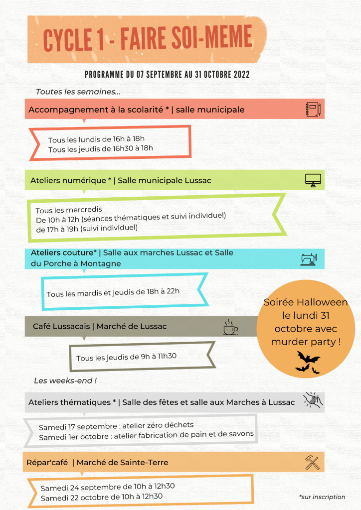 Sur adhésion à 30€ pour l’année à l’association et avec des tarifs à prix libre pour les ateliers, n’hésitez pas à vous inscrire en envoyant un mail à animation.troistiers@gmail.com ou en appelant ou envoyant un SMS au 07 85 61 63 58